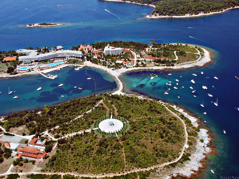 One of the most romantic islands in the Adriatic Sea – the Red Island. These are in fact two islands connected by a dike. It is a 15-minute boat ride distance from Rovinj center. Huetterott family bought the island in 1891 and they redecorated the old island Benedictine monastery into a villa.